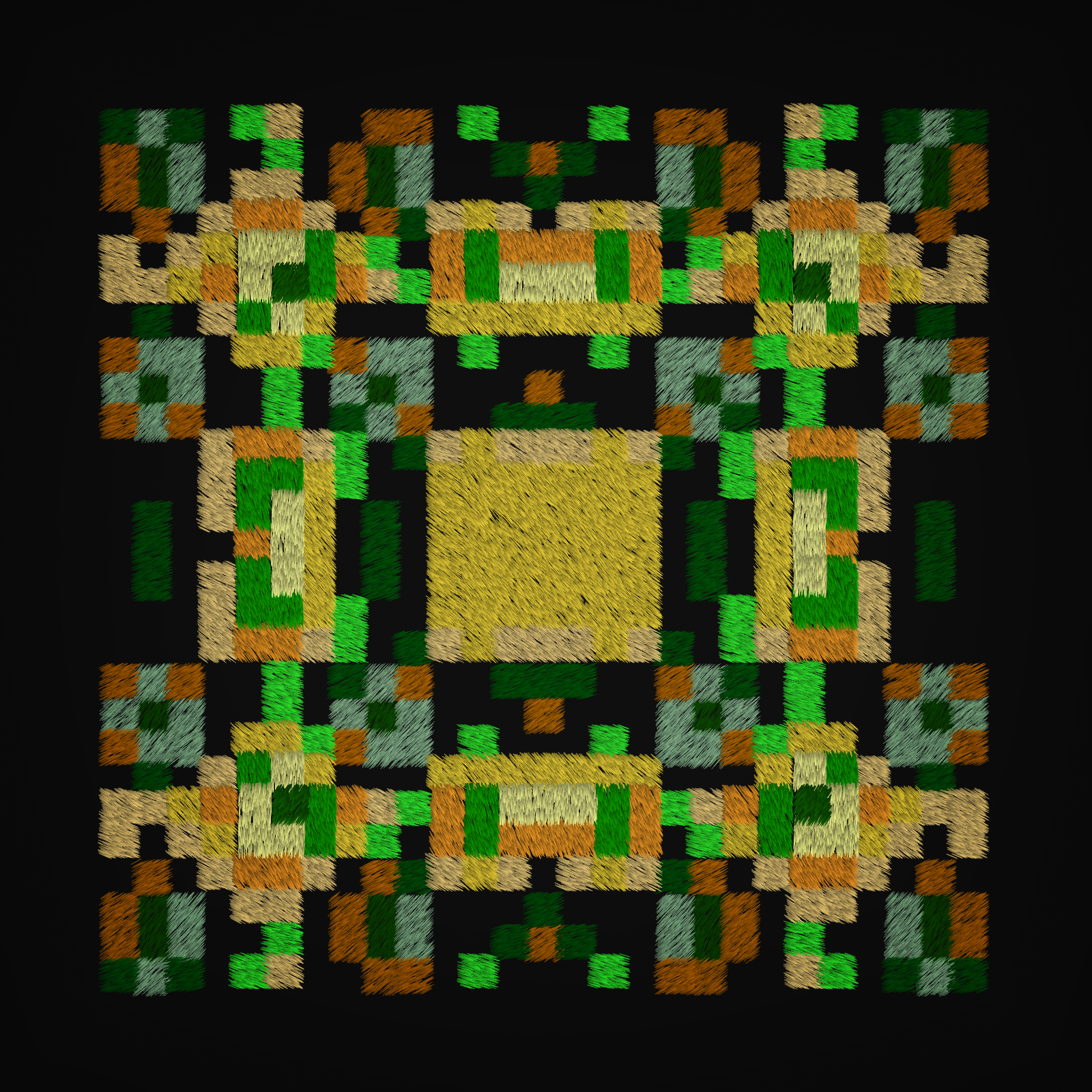Randomly generated SDF grid, reduced to pixels/blocks and turned into a composition of thousands of single draw-strokes.