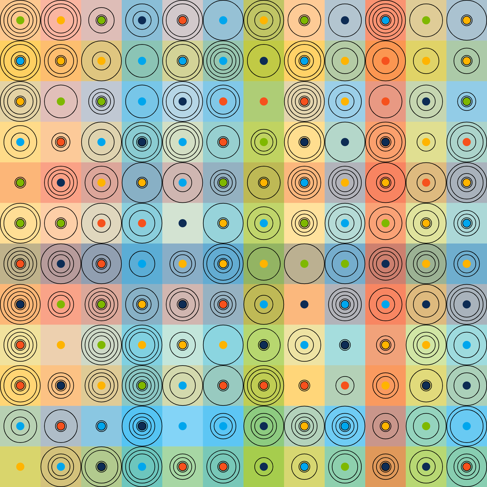 Used colors are randomly selected from 15 hand picked palettes.