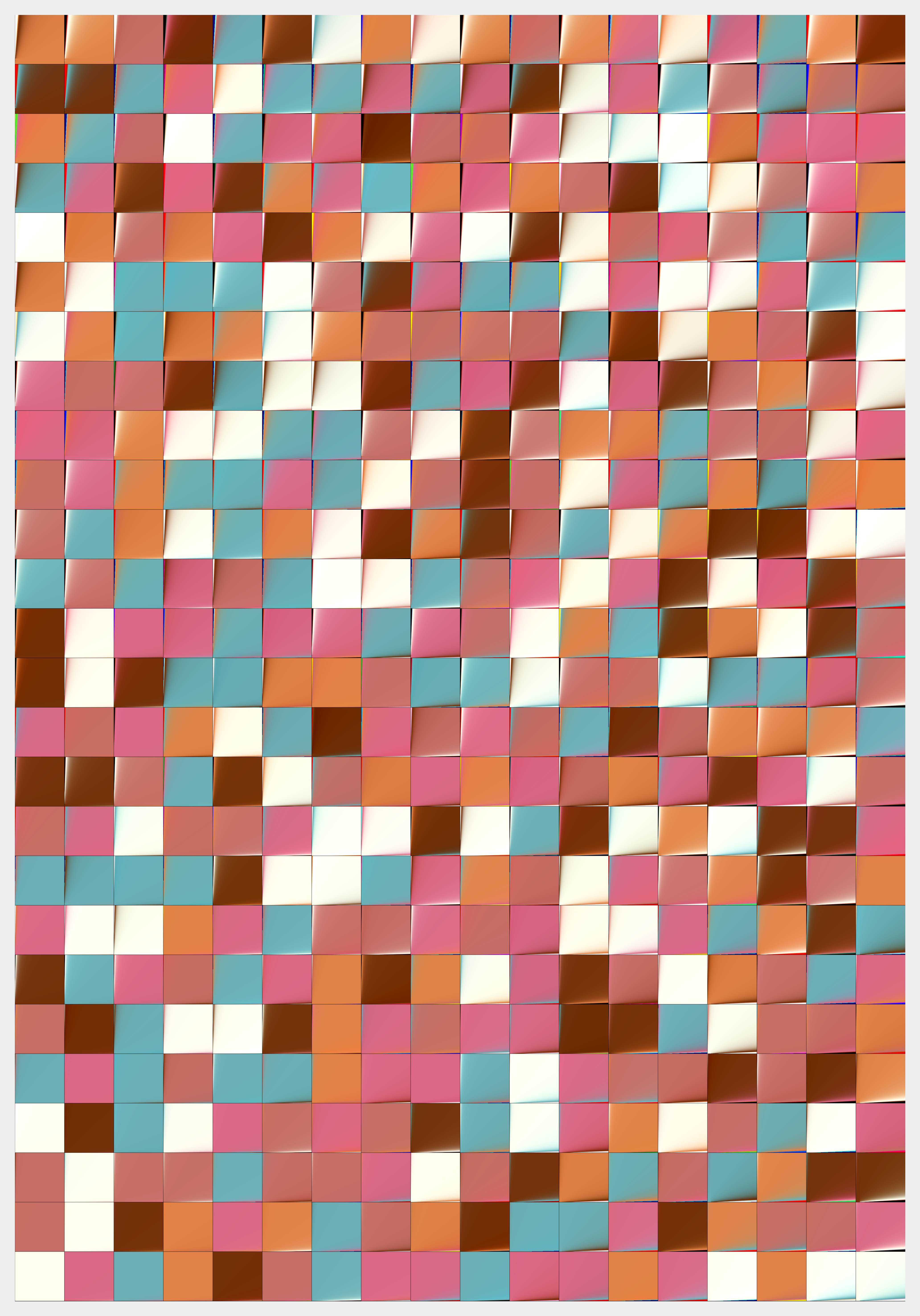 Bicubic interpolation is a method for interpolating data points on a two-dimensional grid. It creates smoother surfaces compared to bilinear or nearest-neighbor interpolation. While bilinear interpolation considers only 4 pixels (2Γ2), bicubic interpolation takes into account 16 pixels (4Γ4), which is why itβs computationally more demanding. Here I fill the canvas pixel by pixel, using only the bicubic interpolation method to achieve smooth color gradients. A bit of chaos is introduced to the overall composition through my custom metric for pixel placement.