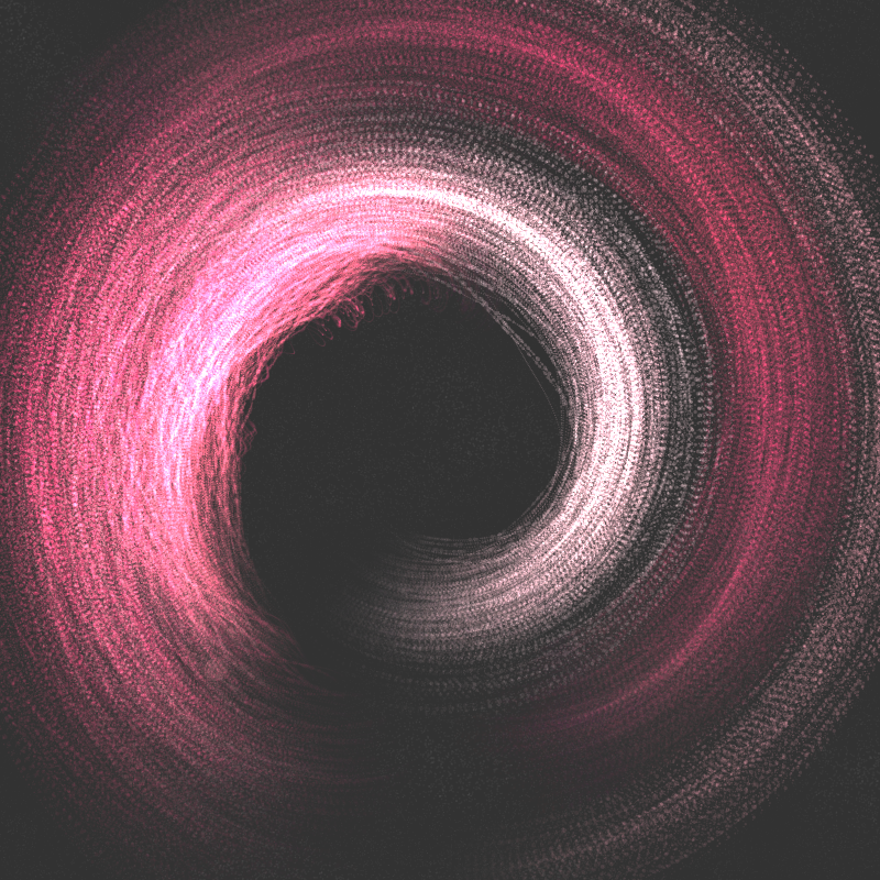 I was born in Hawaii, and my thoughts often go back to that place. There is a beach on the North shore of Kauai where, at certain times of the year and sea conditions, the sunset lights up the tubes of the waves with spectacular colors, and if you're inside the tube you see an amazing light show. I've many times thought of trying to take advantage of this phenomenon with long exposure photographs and colored LEDs. This p5.js sketch is an attempt to relate with code what I see in my head for that real-world process.