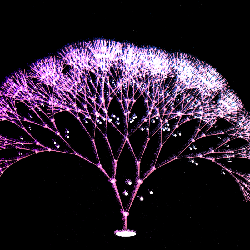 Experimental work making glowing soul trees with recursive division and generative sound.