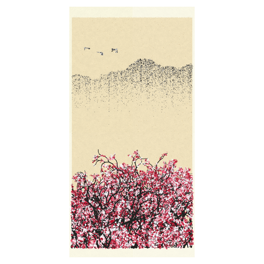 The generative system at the backend of "Mei" is an exploration of this cultural symbol by modern art language. The basic elements of the paintings are merely circles and enclosed flow field shapes. A great variety of short and light strokes of such elements are used across the paintings. Xuan paper is occasionally used as background, which is a painting material since the Tang dynasty.
