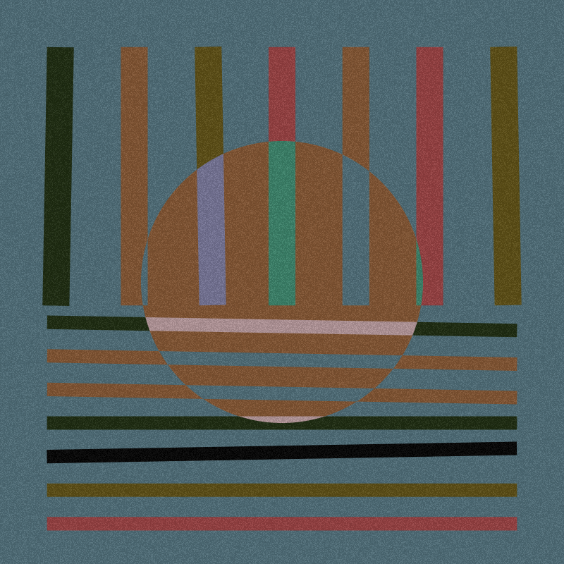 The variation and randomness give the work some asymmetry, common in wabi-sabi esthetics. Because of a limited color palette and the simple shapes used, the works keep their simplicity (another principle of wabi-sabi). The noisy texture gives it some roughness, indeed again a core principle of wabi-sabi.