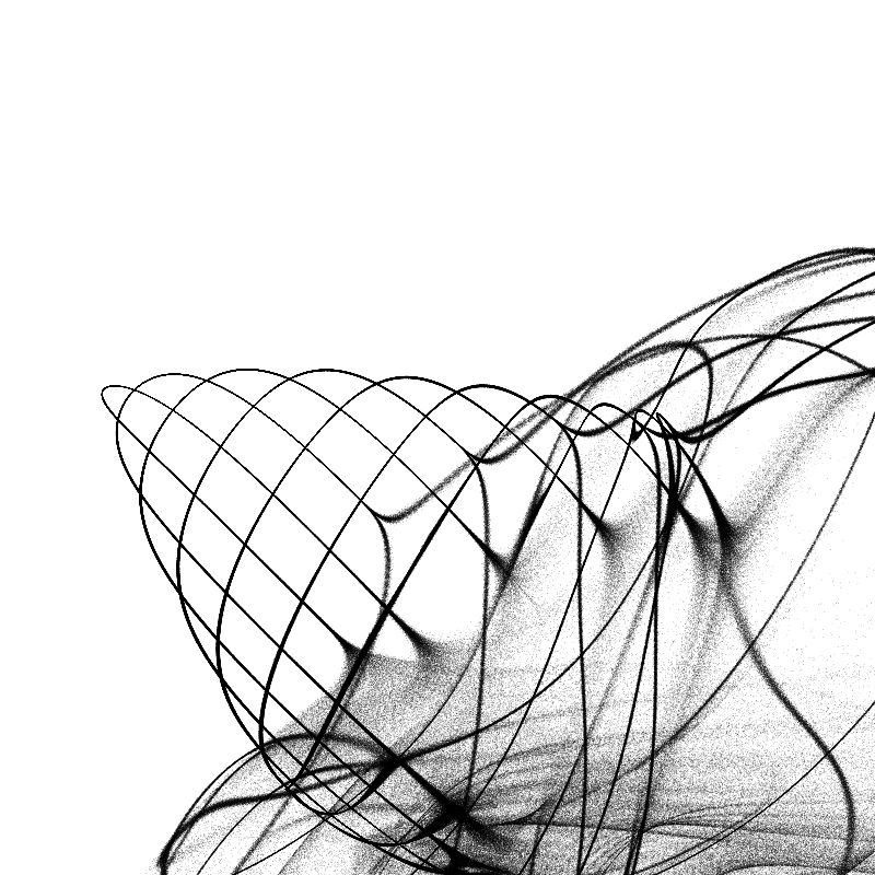 This is a study in chaotic systems, its my first iteration. The system is unpredictable, produces beautiful patterns but at the same time glitches out once a while and throws out a uniformly distributed set of points that fill the canvas.