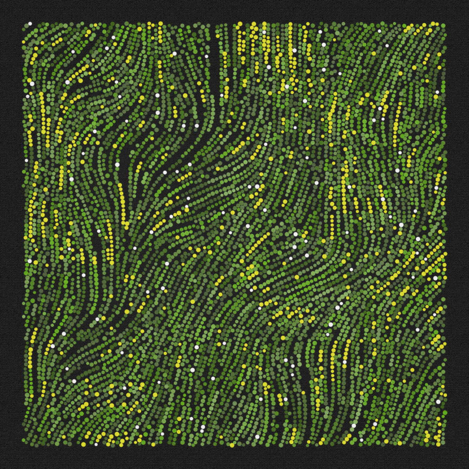 A square shape filled with points following flowlines creating randomized patterns