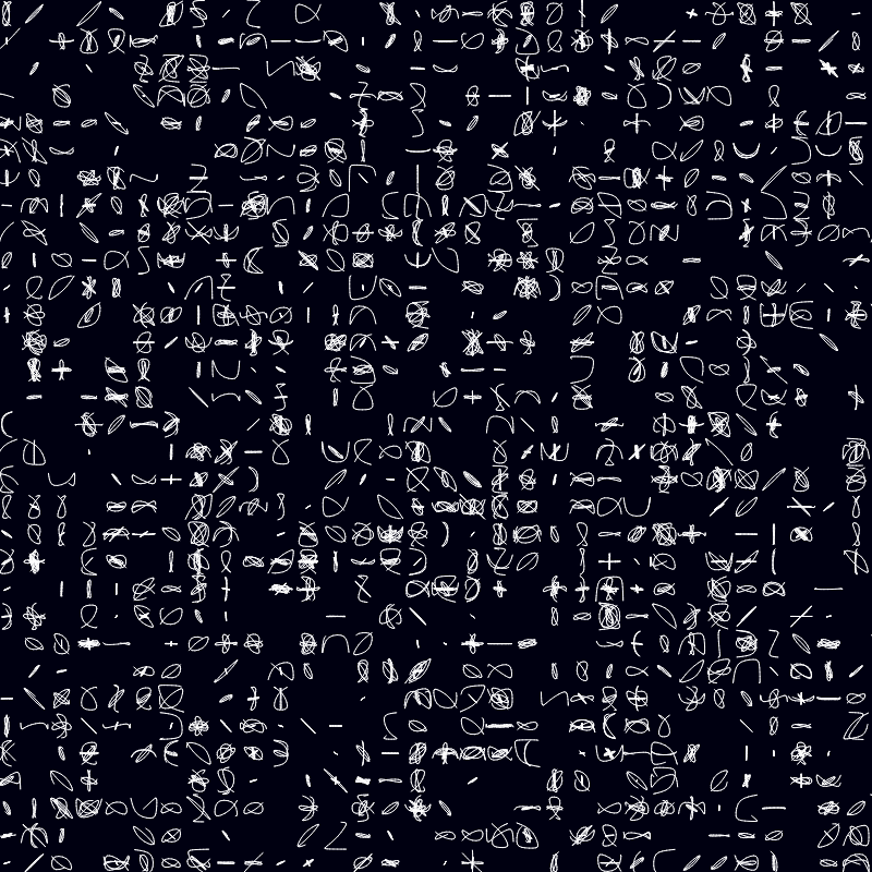 A collection of runes slowly formulated by 1500 uniquely located walkers. Rarity includes: One of five random grid sizes One of seventeen random pen Colors One of five backgrounds 1,500 Walkers assigned to a grid space