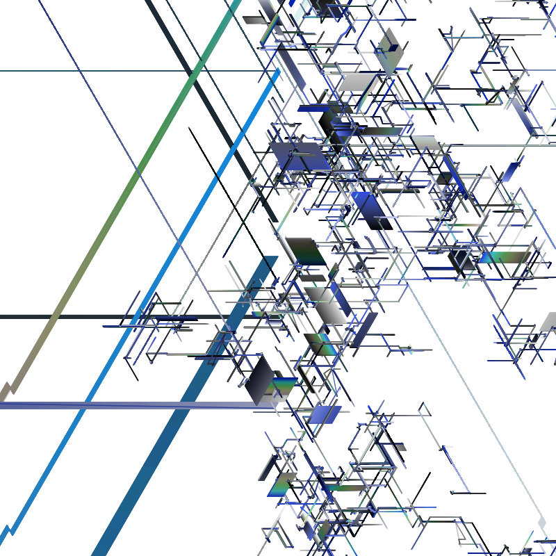 A series of lines and planes intersect at random angles in varying densities and color schemes to create an ever changing composition. Each iteration is unique. Rarity features work as follows :