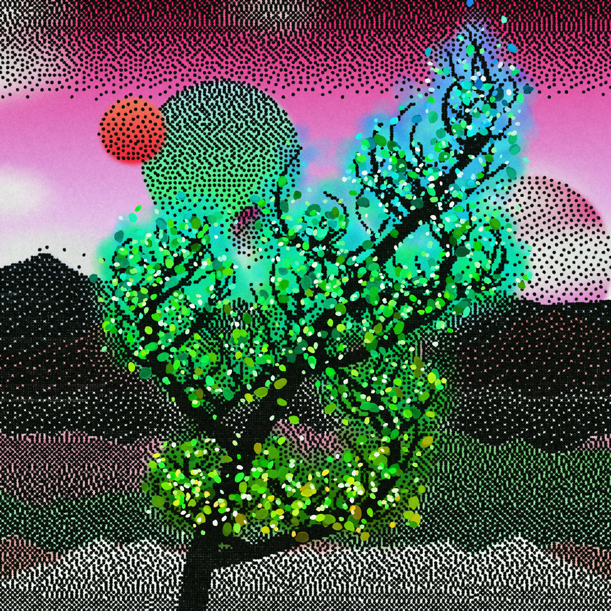 Prints a lo-fi sci-fi landscape and applies color to the result There are many scene, color, paper, and printer combinations The final resolution is 2048x2048