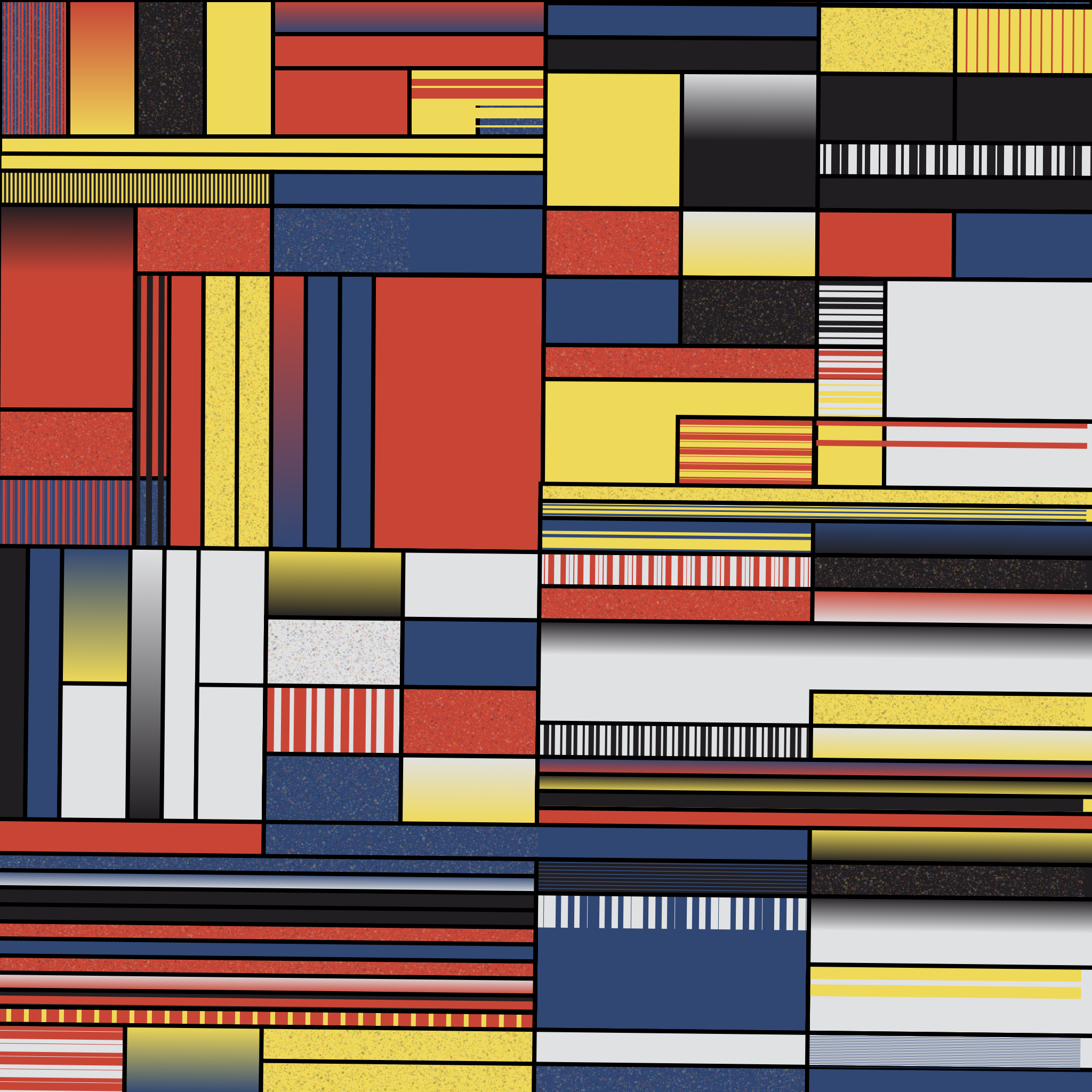 Top down view of generated, Agricultural Landscapes colored in Piet Mondrian colors.