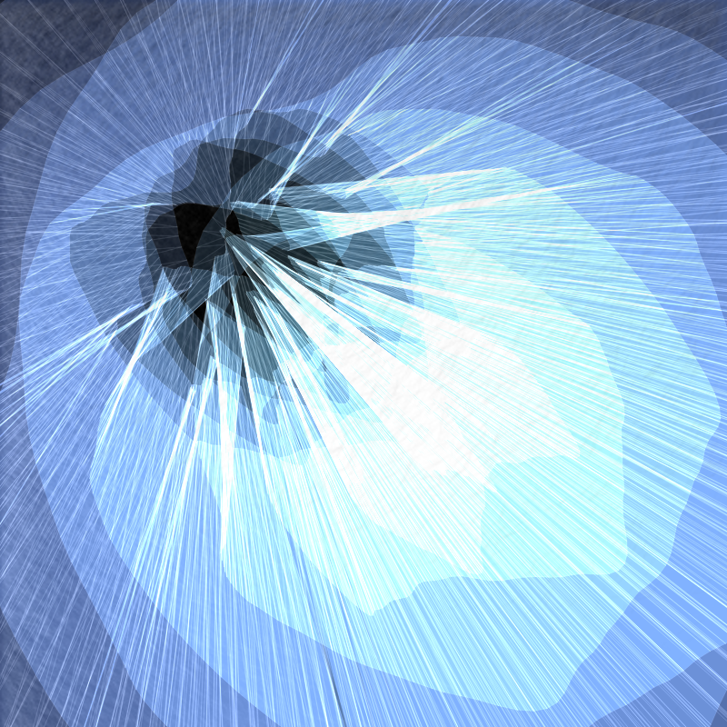 Palette: Ten carefully-tuned colour schemes of equal likelihood, with hue, brightness and saturation chosen to showcase the movement and range of the piece whilst maintaining detail.