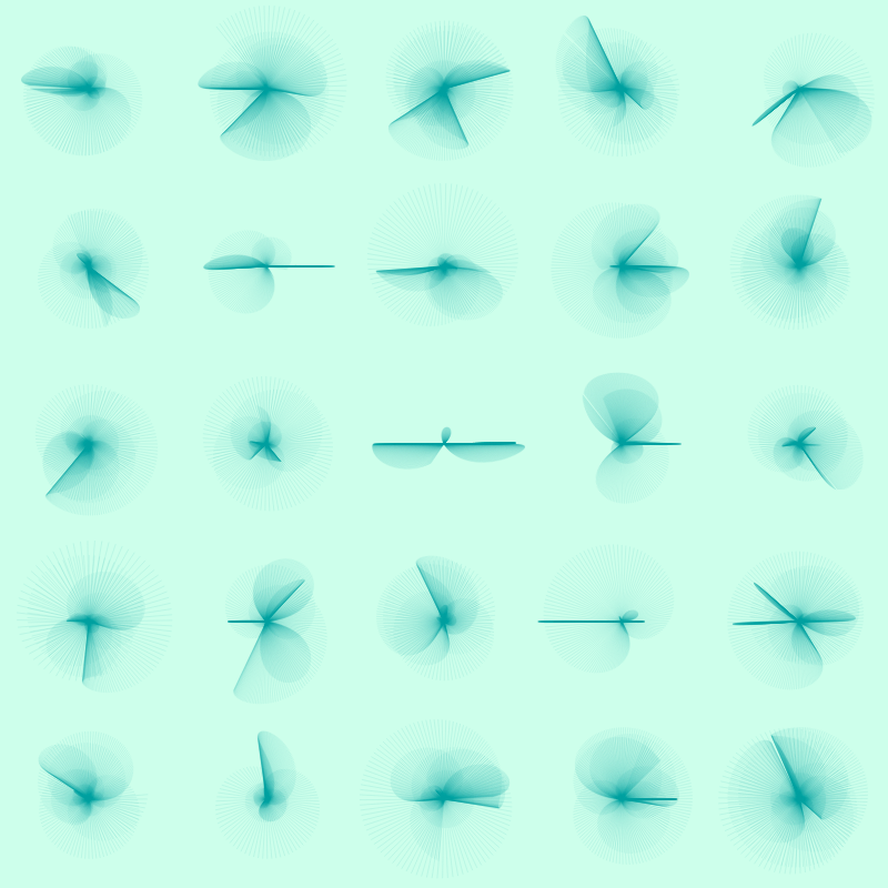 Each board is made of a certain amount of specimen that can be small or big. Simplex noise seeds change for each artwork. You can replay the drawing by clicking the canvas.