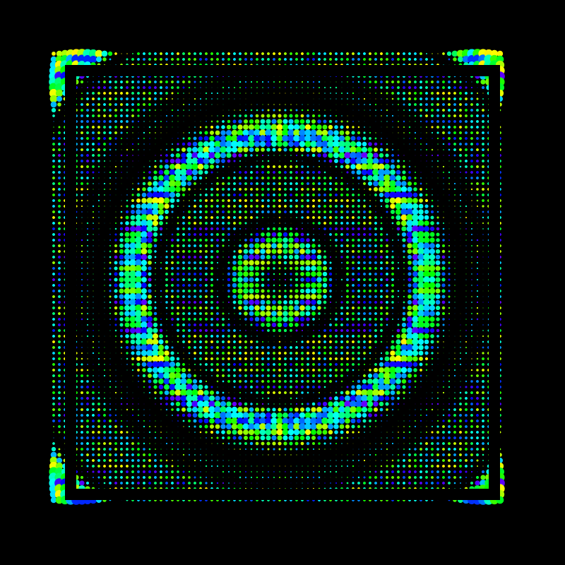 An endlessly sweeping periodic function ripples across a multi-hued canvas, sweeping out pulses of shadow and colour.