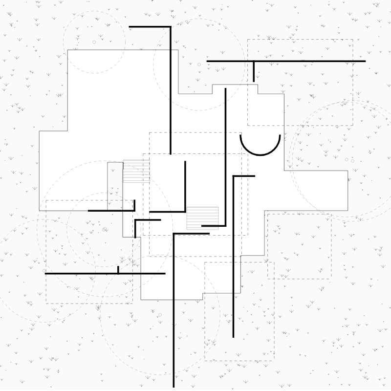 Inspired by the modernist open plan, the elements in this composition find their position in negotiating with each other.