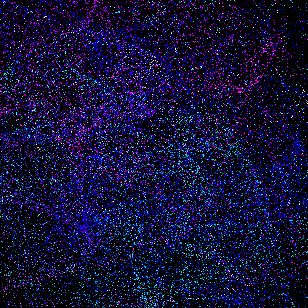Strange attractors throw shapes across the canvas and evolve over time. Inspired by the 1997 'strange' screensaver from the xscreensavers collection.