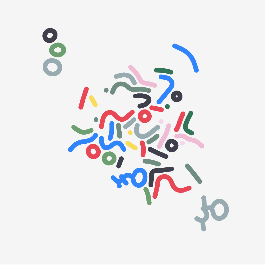 A simulation using differential growth, imitating simple life-forms resembling bacteria. The points in each filament attract and repel each other, to form doodle-like shapes in the end.