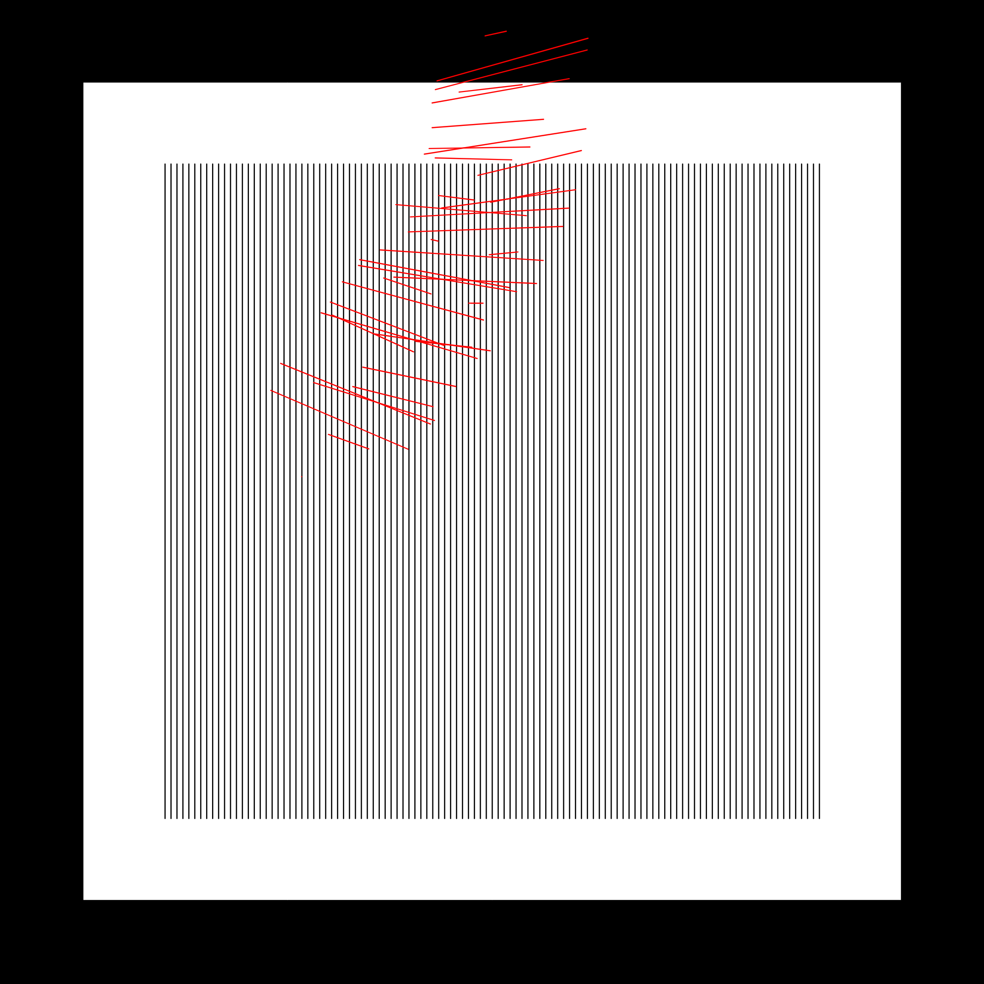 generative experiment on volume, space and intersection using only vertical lines and limited colours
