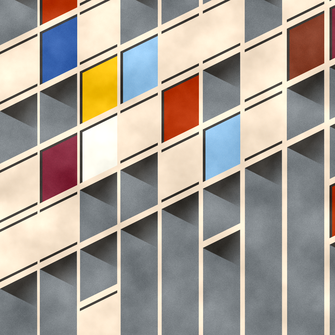 Cité radieuse is a generative artwork inspired by the architect Le Corbusier. Colour palette is taken from la Cité radieuse in Marseille / France.