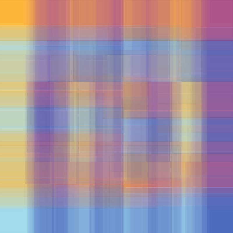 Abstract painting made with recursive rectangular shapes. The color palettes have been chosen very carefully, and there is a complexity hidden behind the deceptively simple results. Press the 's' key to save a 2048x2048 version where all the details are apparent.