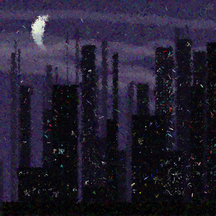 - random buildings and lights - 16 moon phases + 4 moon colors - random night sky