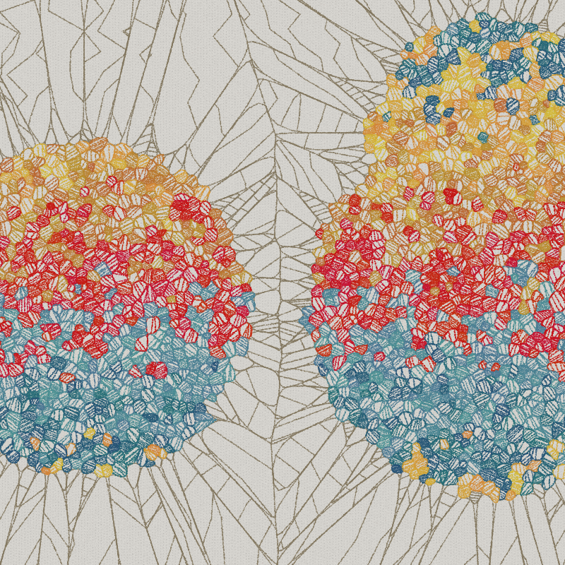 Poisson disc sampling of a noise field masked to a shape, and then Voronoi tessellation. Rendered in hand-drawn lines.