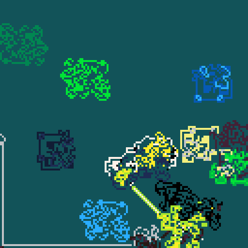 Eight one dimensional, and eight two dimensional Langton's ants battle for space in a tiny box. Z or X will speed up the step count of the program. Written and debugged in Pico-8.