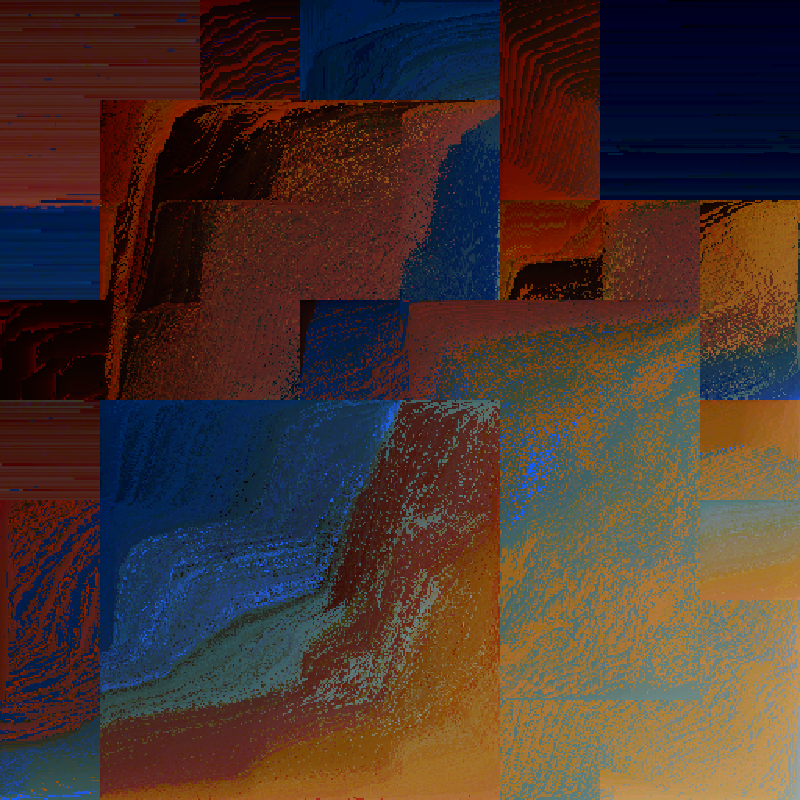 Color information is sampled from photos of physical artworks created over the last 1500 years. Source images for each token in this series were selected at build time from a database of over 100k artworks.