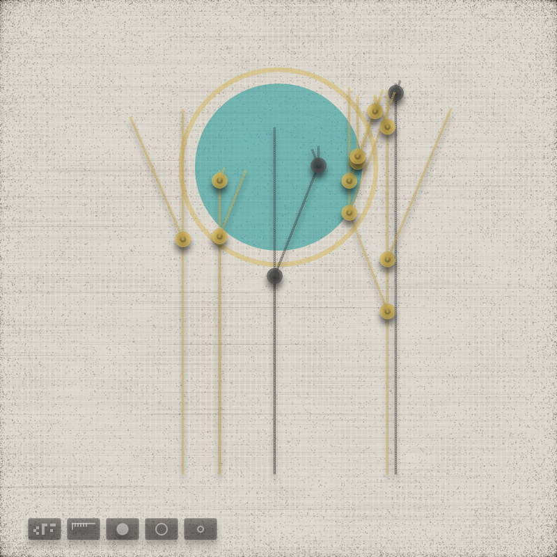 An experiment in maximal minimalism. The human brain's ability to deduce patterns and imagery given the the most basic input has always amazed me. Three circles and a handful of straight lines become a blazing sun and tall trees on a plain.