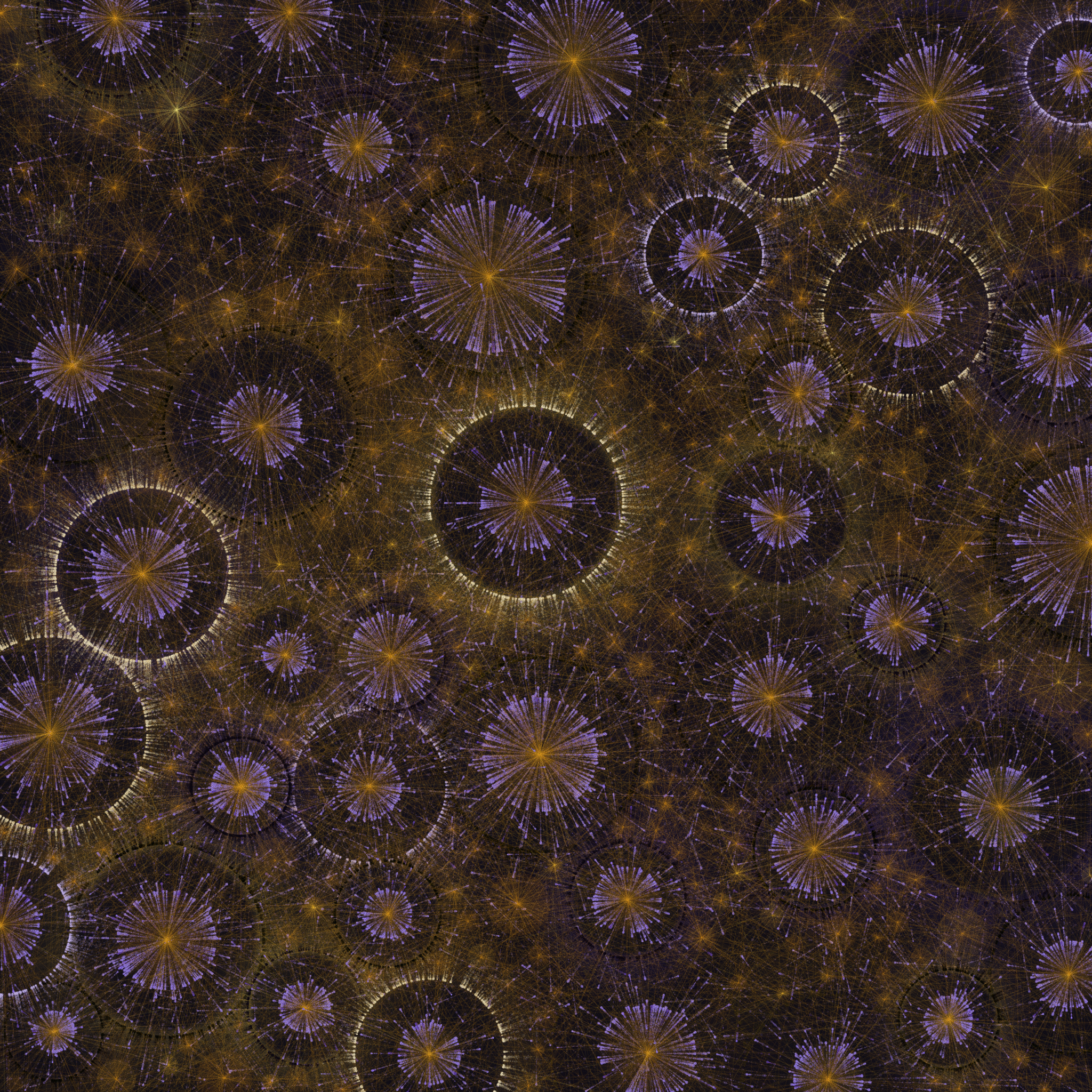 I play around colors, contrasts and details to create some kind of lights. Some composition and palette might remind you some fireworks, some cities viewed from the sky, some flower fields or... Whatever comes to your mind.