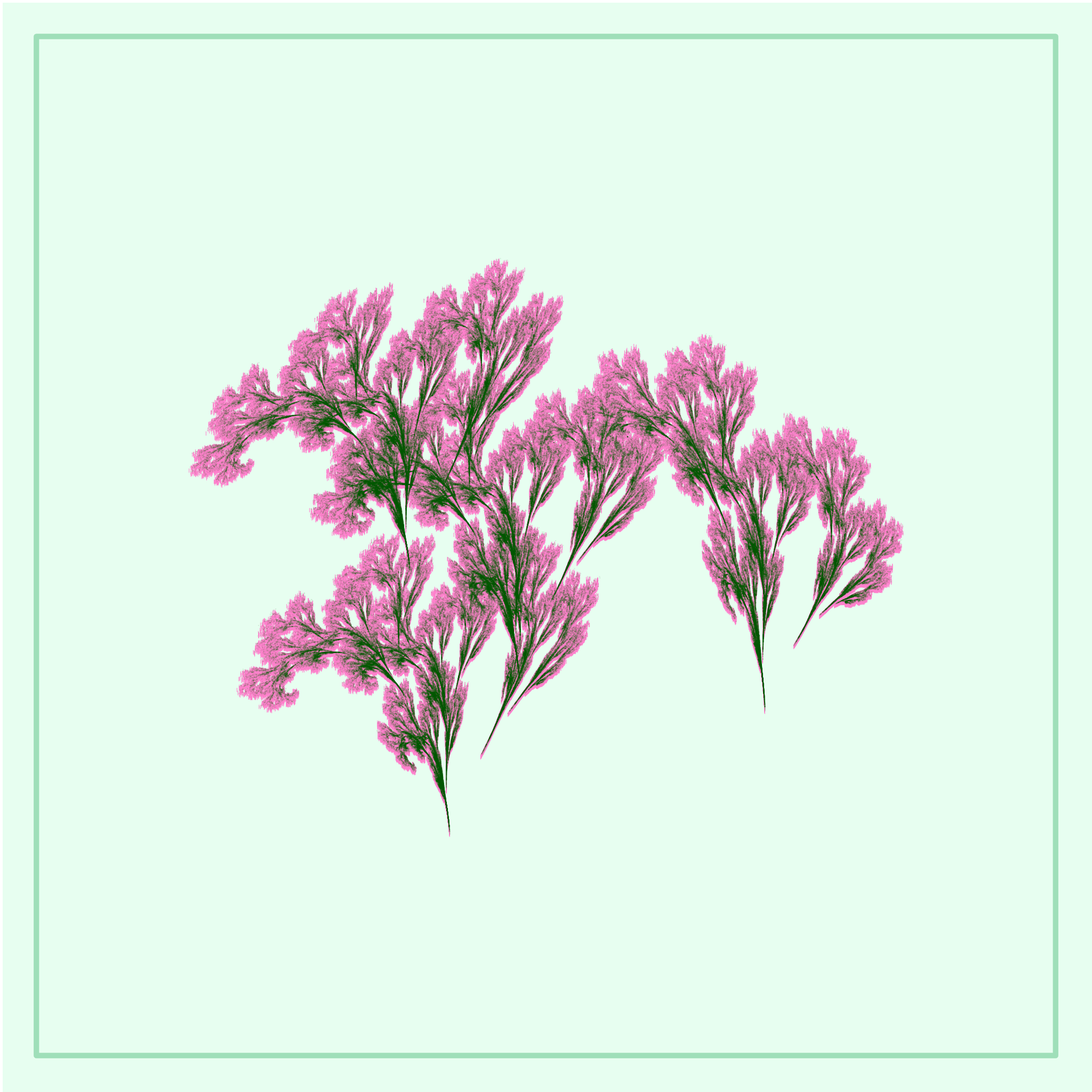 Chaotic fractal that generates flowery plant-like forms. Colors are chosen to look natural.