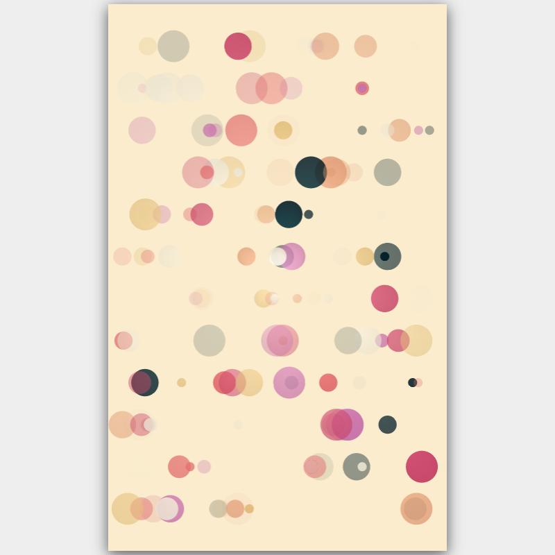 The background changes colors throughout the day. Every day the same background color will appear at the same time as the previous day. This will give you a different experience based on the time that you watch the piece.