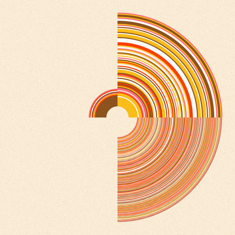 There are no rarity attributes assigned to this artwork, its value is intended to be determined by viewer aesthetic alone. That aside, there are 9 possible color palettes and background colors.