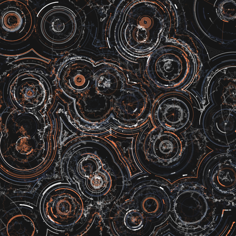 A Voronoi field is the basis, inspired by Jonathan Reynold's "voronoi noise" sketch (available here: https://openprocessing.org/sketch/1015631 ). This starting point is used to create an abstract image that keeps drawing infinitely. Per-view randomization is introduced in the speed and size of the drawing of the arcs, to create the chaos, and in the placement of the Voronoi points. This ensures each viewing is unique. Three traits describe each individual mint: