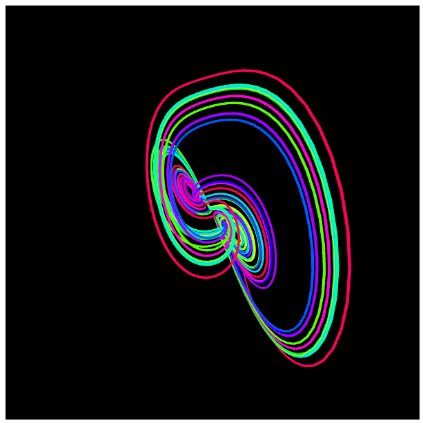 This generative art is created in P5 Js and is governed by Lorenz's equations (set of three ordinary differential equation)