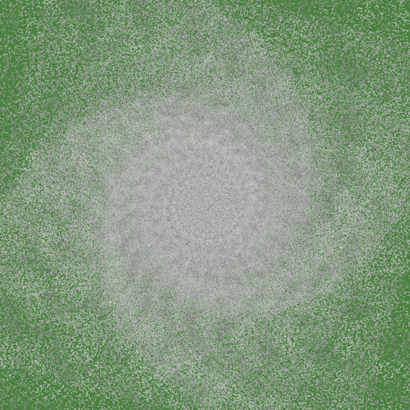 Kleine Punkte, wiederholt und gedreht. Grau, mit farbigem Hintergrund. Chaotisch.