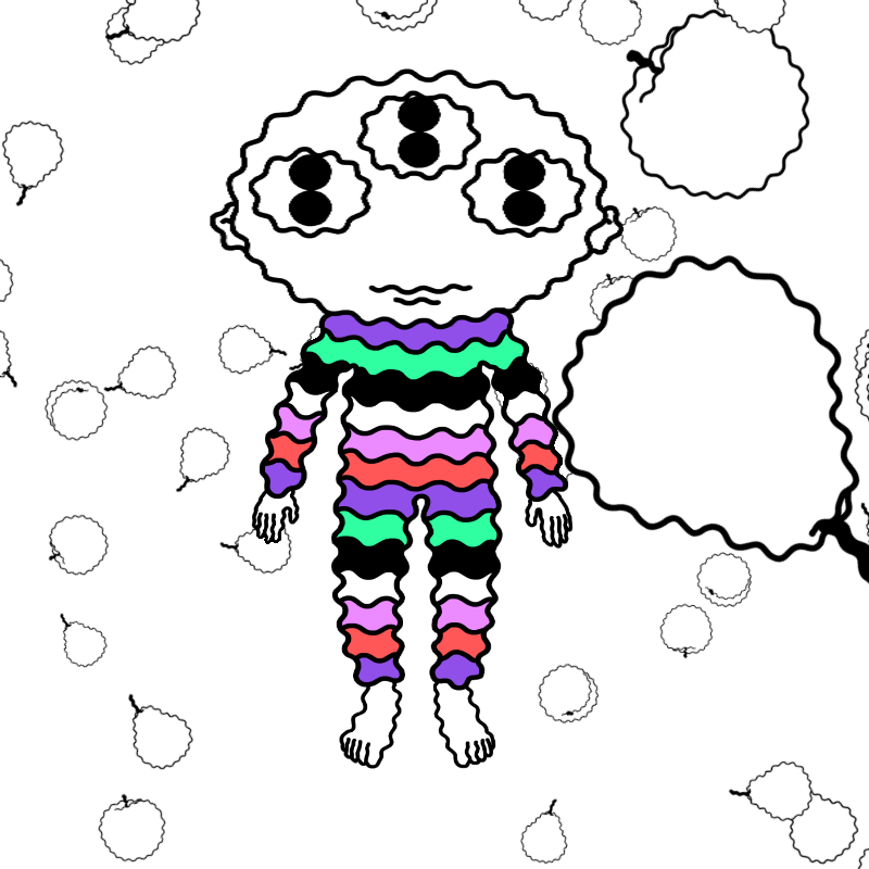 222 generative variations for a hand-drawn, animated frame by frame, interactive character.