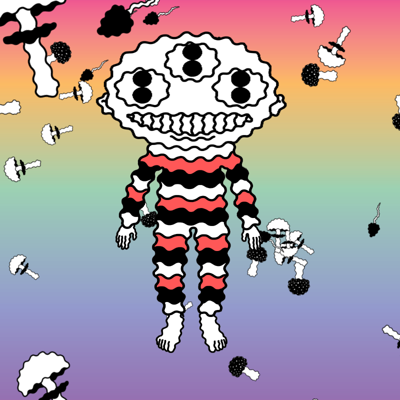 222 generative variations for a hand-drawn, animated frame by frame, interactive character.