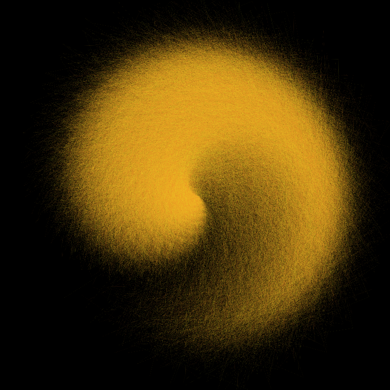 I discovered these settings for my day 1 contribution in this year's Genuary event. It uses the same code as my last piece 'Movement' and I think it's a nice example of how adventuring deep between numbers throws up interesting results. If I hadn't accidentally started looking to 4 decimal places in one spot I wouldn't have stumbled upon the variety in both these or 'Movement'.