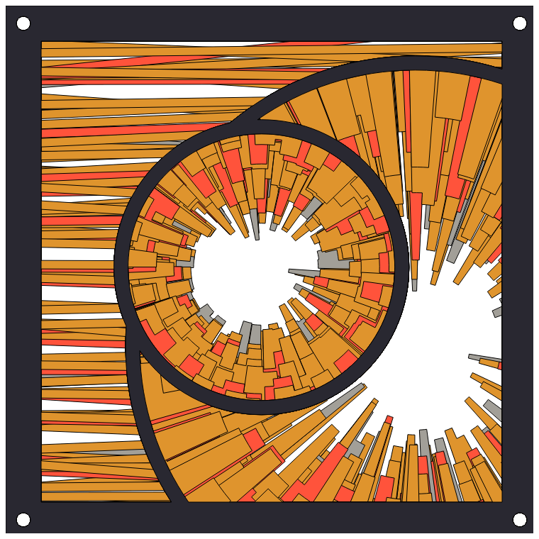 Wrapping a skyline in on itself through space and time. This generative artwork is carefully designed so that its SVG output can be used on a laser cutter and transformed into an IRL woodcut.