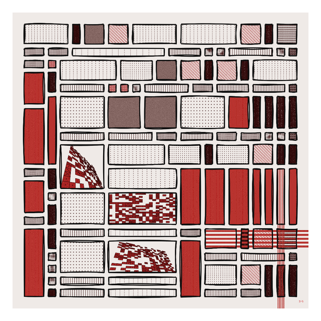 Window is a generative piece exploring the different densities formed by both rigorous and pseudo-random patterns through wobbly quadrilaterals.