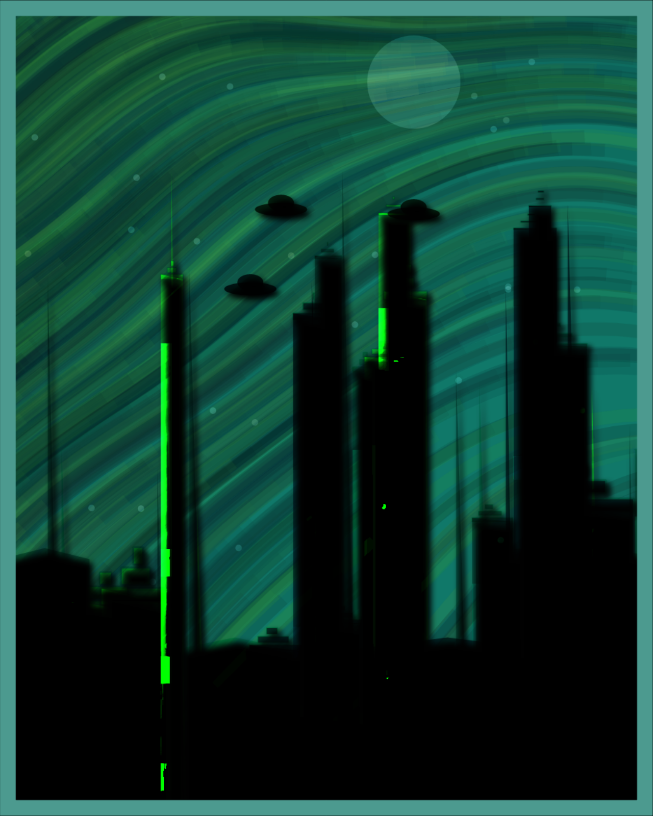 A take on fantasy cities and their silhouettes during dawn & twilight. Stunning skies and shadowed urban infrastructure.