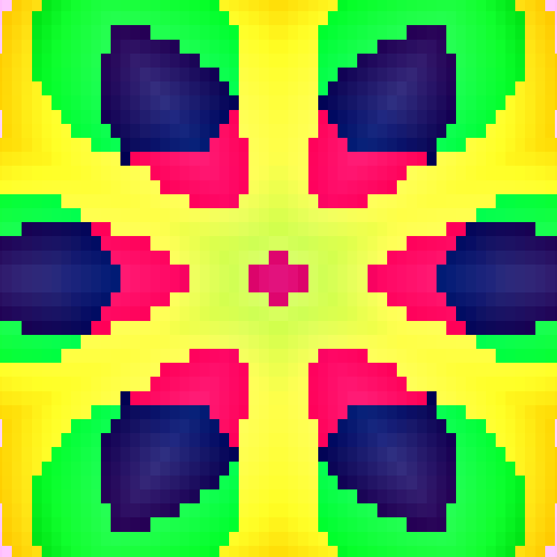 Pixelated Star Pulse. Creating pulses of hexagons and six-pointed stars. Capture taken at 14 seconds. Lots possible combinations of colors, pixelation and oscillated zoom levels.
