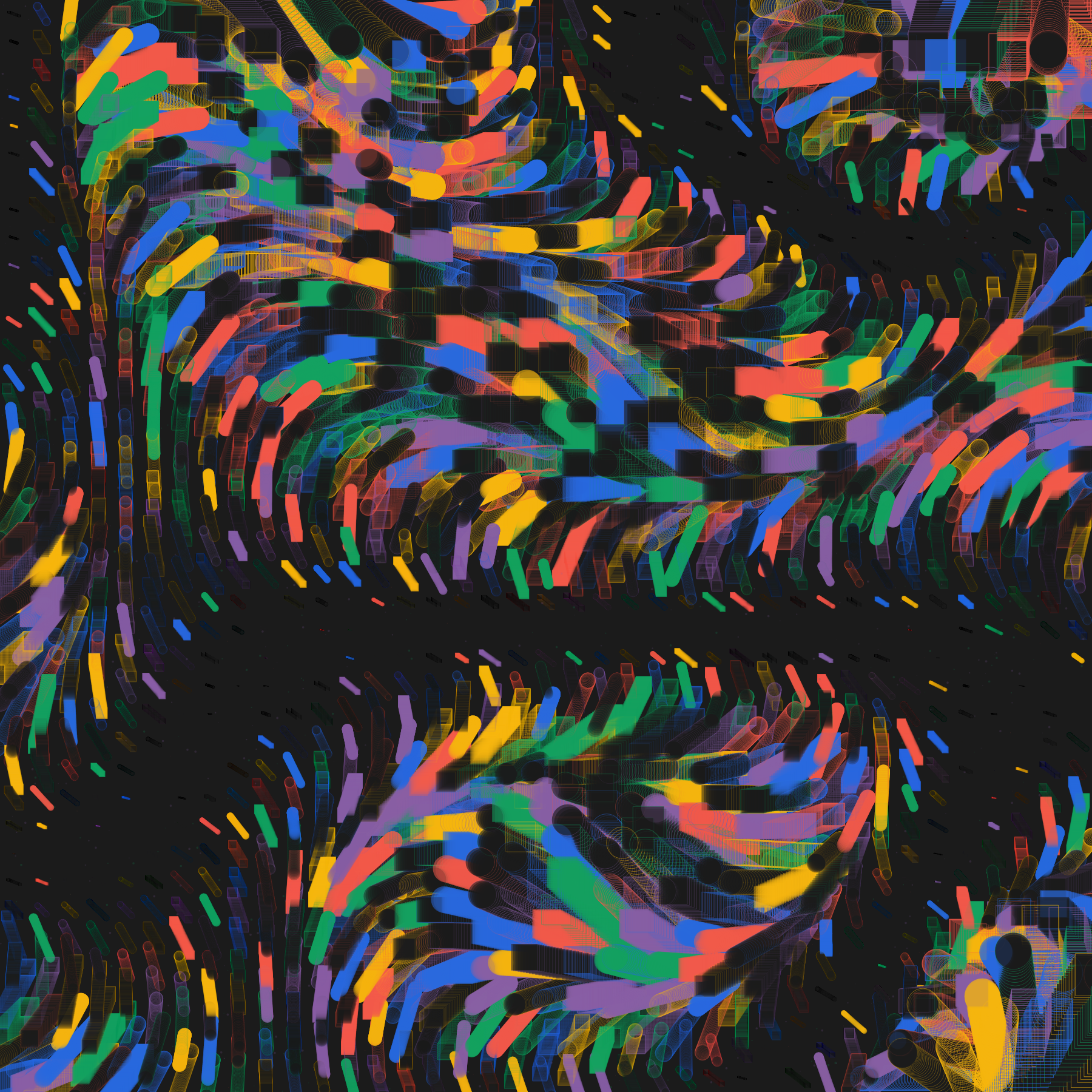 The size, position and frequency of trails are generated for each token, along with the color theme.
