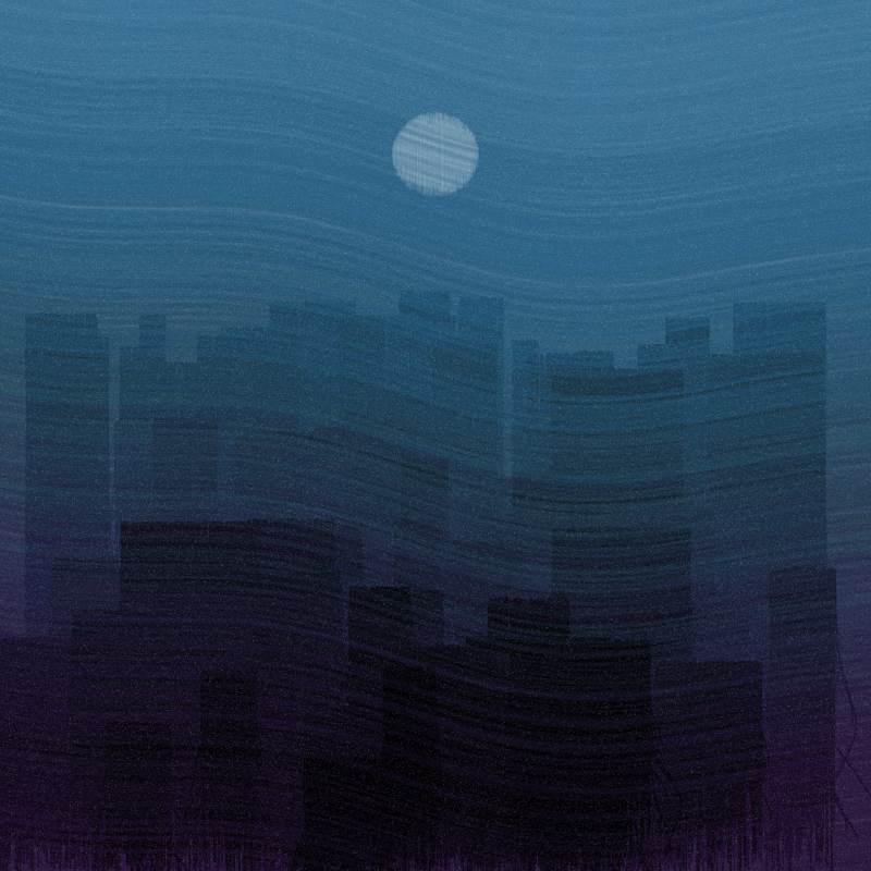 The algorithm originally began as an exploration of interleaving objects with layers of mist to give a sense of depth. Objects drawn earlier are covered by more layers and therefore appear more distant.