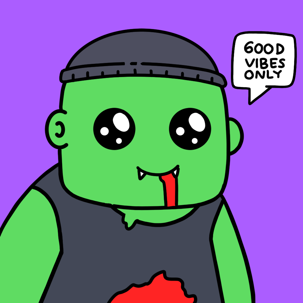 dedfrenz #2 is an auto-generated zombie collection on the tezos blockchain, featuring art by cubehead and purespider as a dev <3