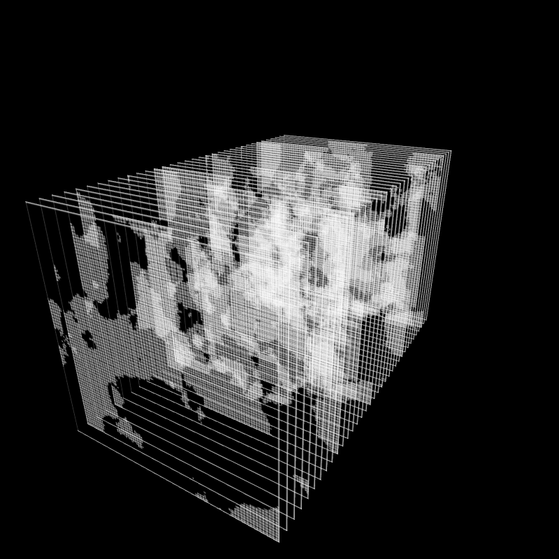 Each token is composed of 35 frames stacked in the z-axis. Each frame is a simple noise field with several detail levels displayed on transparent background.