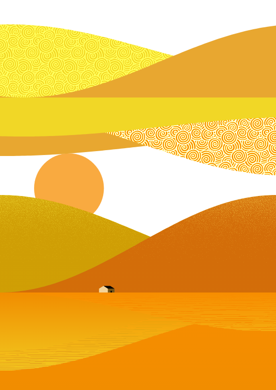 Inspired by monochromatic art of the late 60s, Russian folk-art woodblock prints, and the stylised colours of British underground comics, excited to introduce a series of bold rich landscapes. England, Wales, Ireland and Scotland represented by red, yellow, green and blue, sometimes a house or two, and groovy clouds.