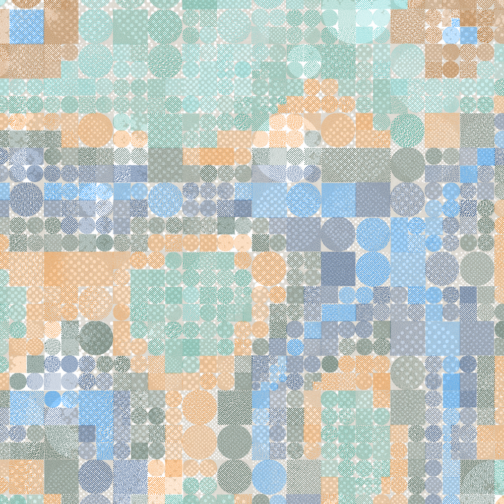 This work is an experiment using generated risograph halftones and hand-drawn elements to create a highly textured pattern.