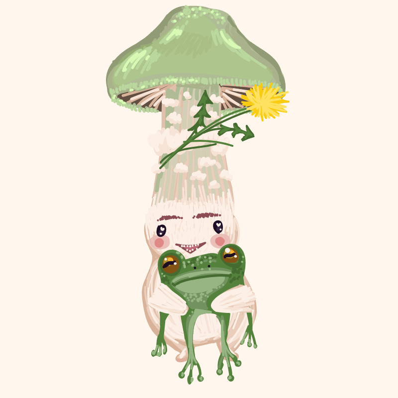 We have 6 mushrooms types, 6 poses, many many face generation options, some freckles, sunshine in heart, a few frogs, one snail and many flowers.