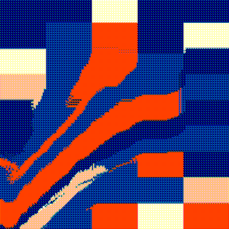 Generative animated painting made from dithered pixels smeared in real-time. By @galoandstuff.