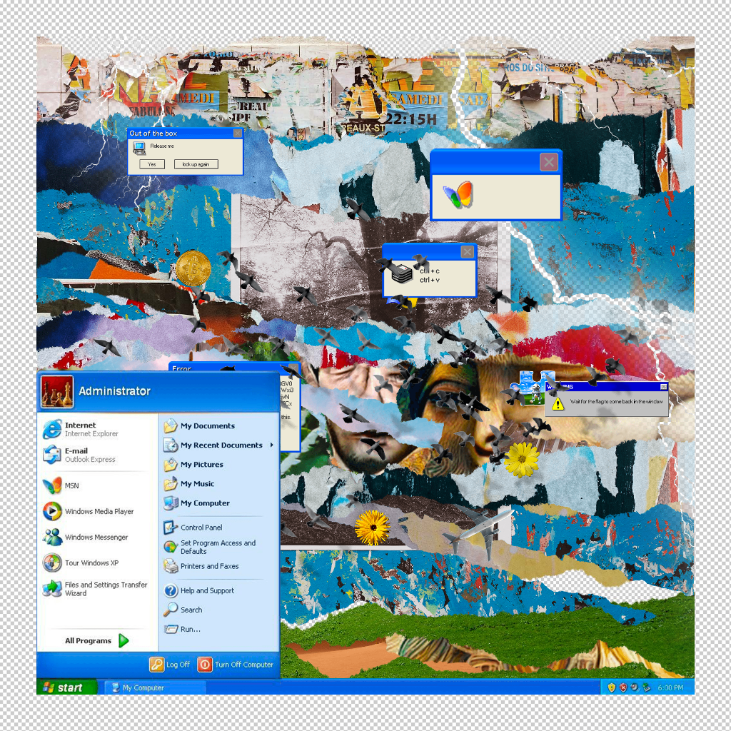 Every hash generates a unique visual collage out of an infinity possible combinations by mending several png layers created by Popeye Pazuru.
